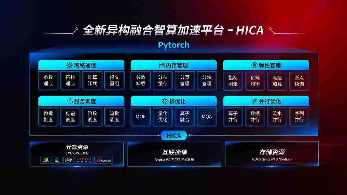 通过自研的服务层、、中间适配层、、以及调度编排算法,,采用数据并行、、模型并行等多种并行方式,,,把并行计算任务进行有效的分解,,使其分别由相应的软件栈和算力资源来承接。。当GPU资源变化,,,,HICA可以实时动态调度计算子任务并调整模型拓扑和架构,,,,以充分聚合各种算力资源。。。。